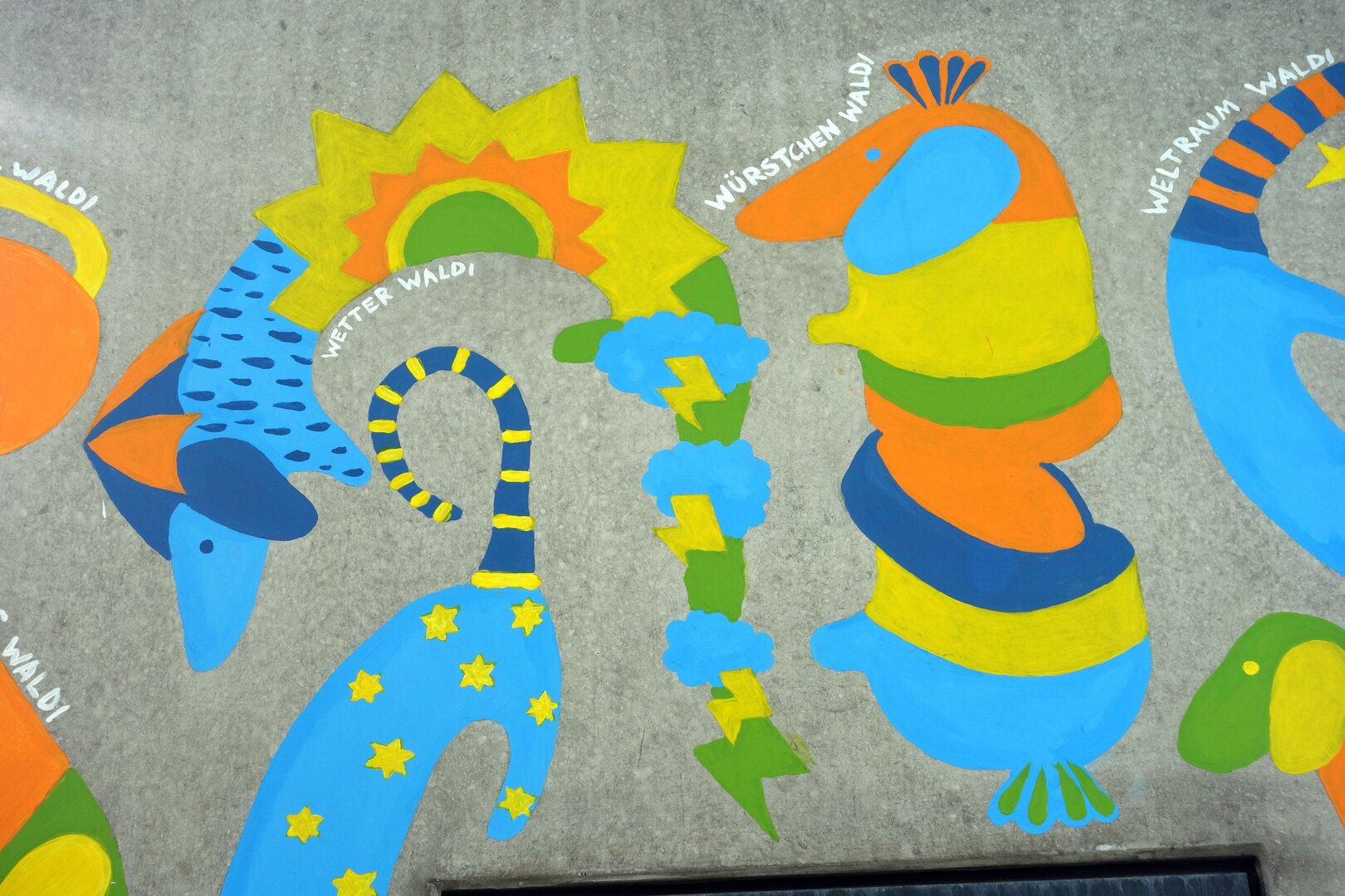 Der olympiabunte Waldi hatte ein geheimes Leben, und was für eines! Er bestieg einen hohen Andengipfel, gründete eine Familie, wies Marathonläufern den Weg, fungierte als Zeitmesser, steht heute noch als Pfosten in der ganzen Stadt- nur nicht im Olympiagelände selbst - wurde von Picasso gemalt und pendelt heute zwischen seinem Dasein als Wolkenwaldi, Wetterwaldi, Wiesnwaldi, Wampenwaldi und anderen Identitäten. Waldi wird uns den Weg in verborgene Ecke des Olympiageländes. Am Ende stoßen wir mit einem Bier auf alle Dackel an, denn die waren einst für die Bierbrauer lebensrettend.